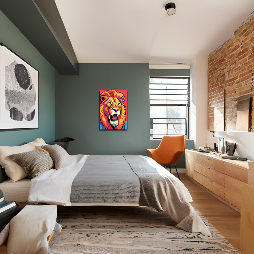 Perfect for adding a touch of character and dynamism to any space, "Majestic Pop Art Lion" is ideal for living rooms, creative studios, offices, or any space requiring a bold style statement. This work not only celebrates the visual power of the lion but also the vibrant expressiveness of pop art, creating a perfect blend of nature and contemporary culture.